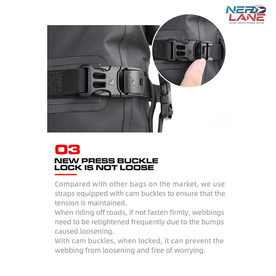 With reinforced cam buckle straps, the bags maintain tension during rugged off-road rides, eliminating the need for constant adjustments.