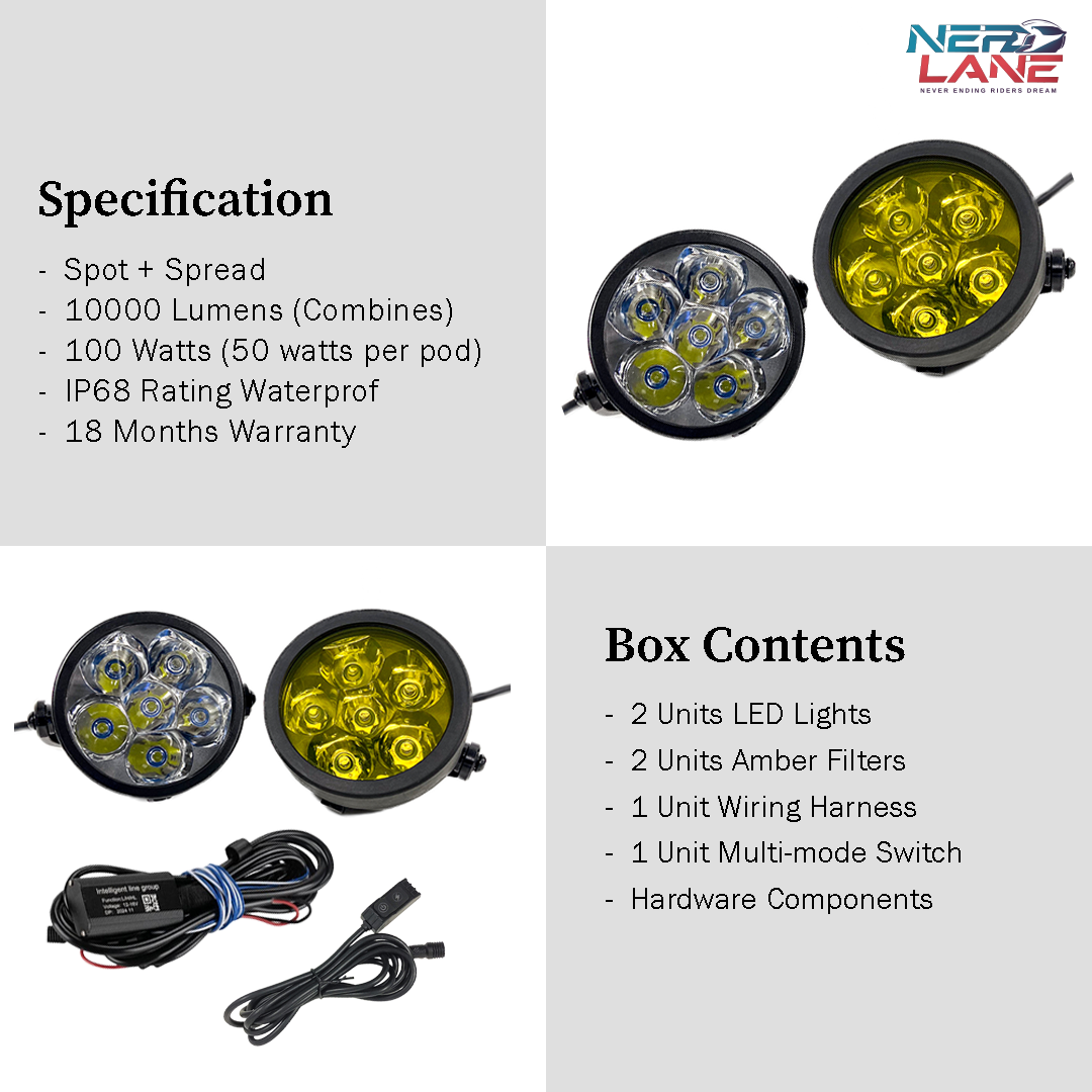 Delivering a staggering 10,000 lumens of combined brightness and 100W output, these lights provide exceptional visibility in all riding conditions.