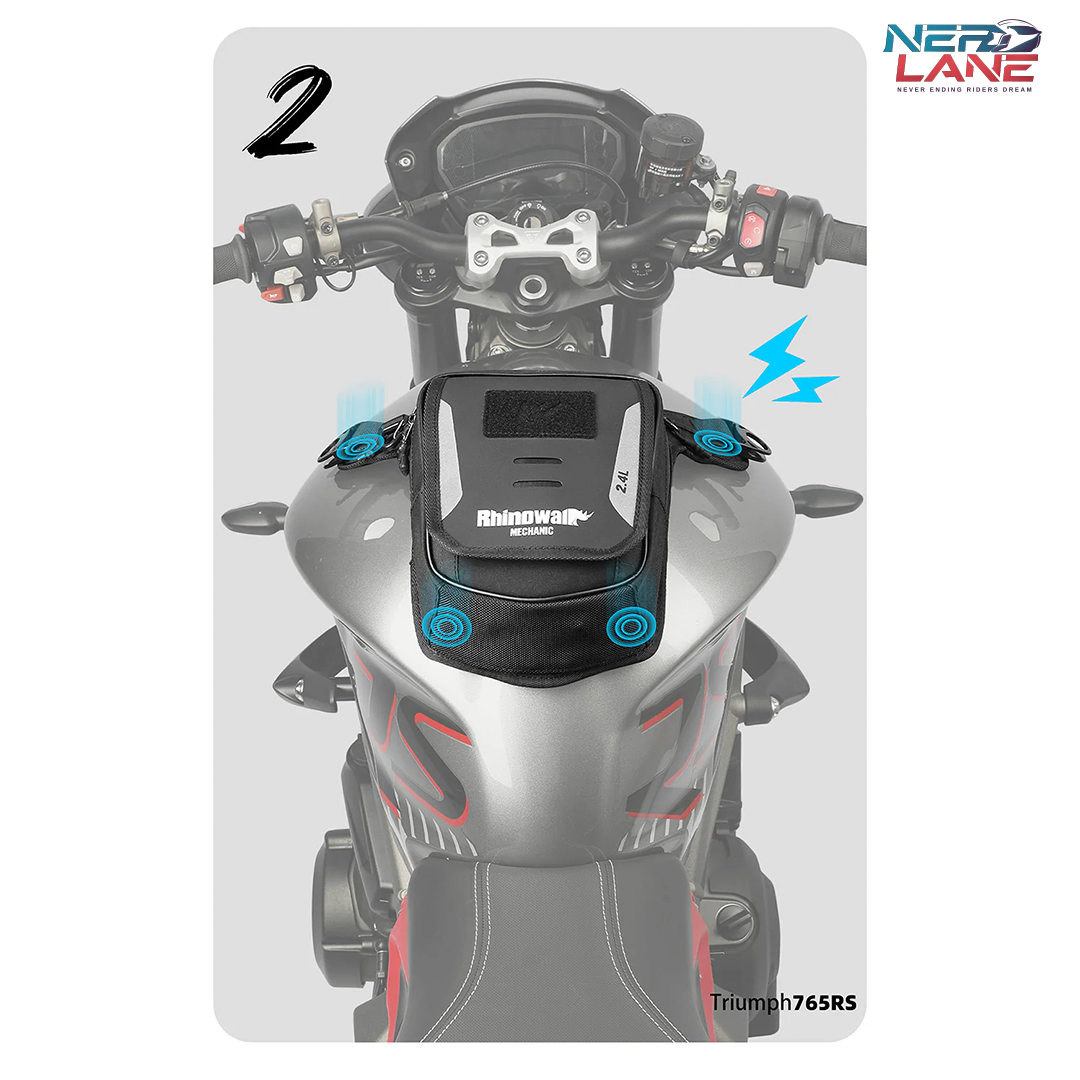 Equipped with magnetic fixation for quick tank mounting, hidden buckle straps for secure fastening, and an anti-wear bottom layer that protects your bike's paint, this bag offers thoughtful design in every detail. With multiple compartments including a dedicated phone pocket and an included rain cover, it's built to keep your gear protected, organized, and dry in any condition.